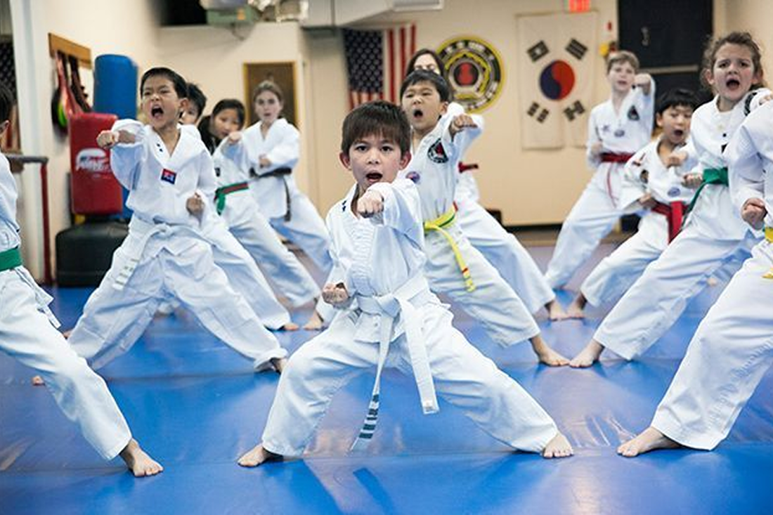 In a typical Taekwondo class, students learn to coordinate kicks, punches, and stances through repeated drills. The discipline of saying “yes, sir/ma’am” to instructors and waiting their turn on the mat teaches respect and focus. This supportive dojo environment, with one teacher guiding many students, helps children internalize positive habits.